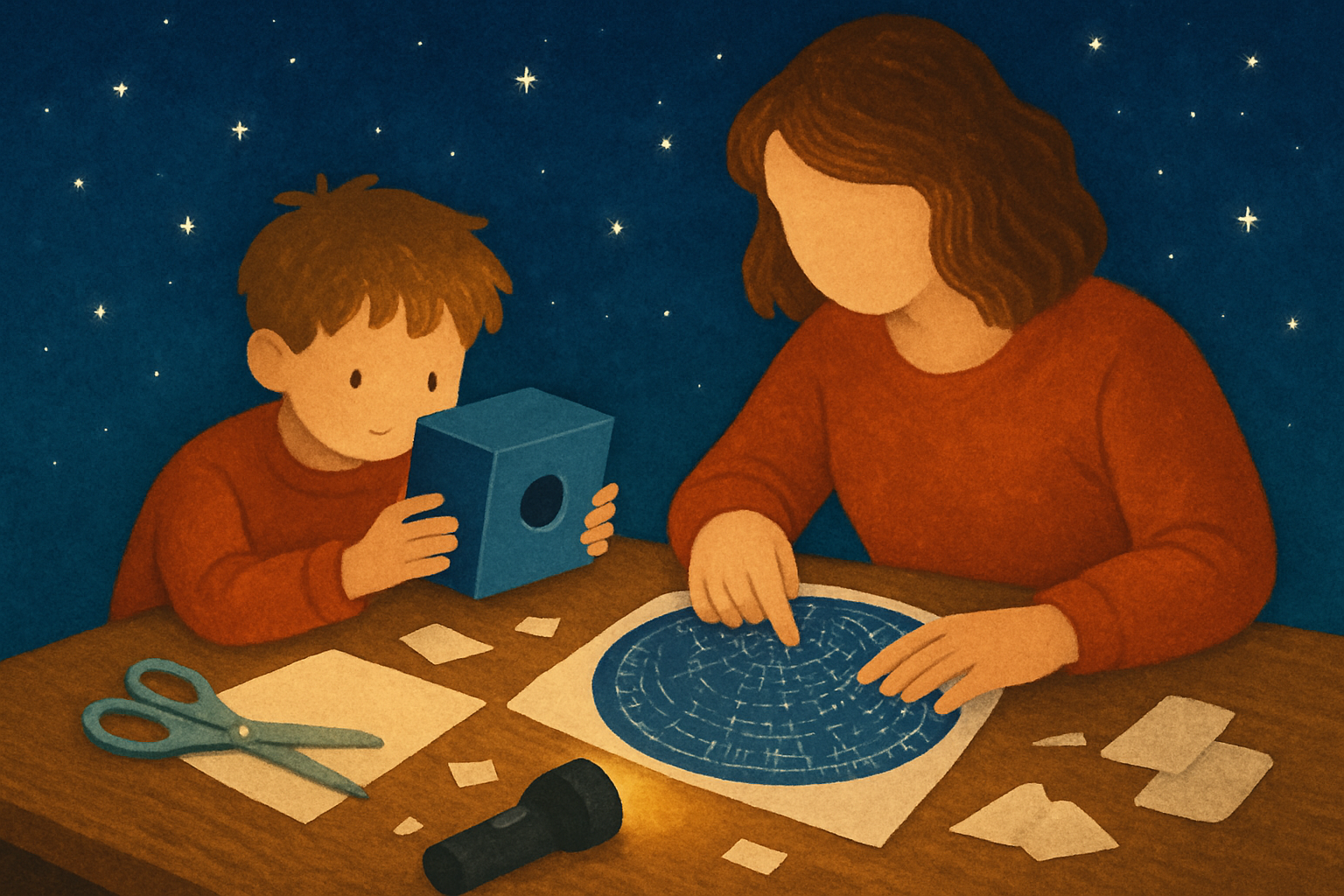 Craft your own planisphere and pinhole projector to explore the night sky. A family-friendly astronomy adventure filled with creativity!