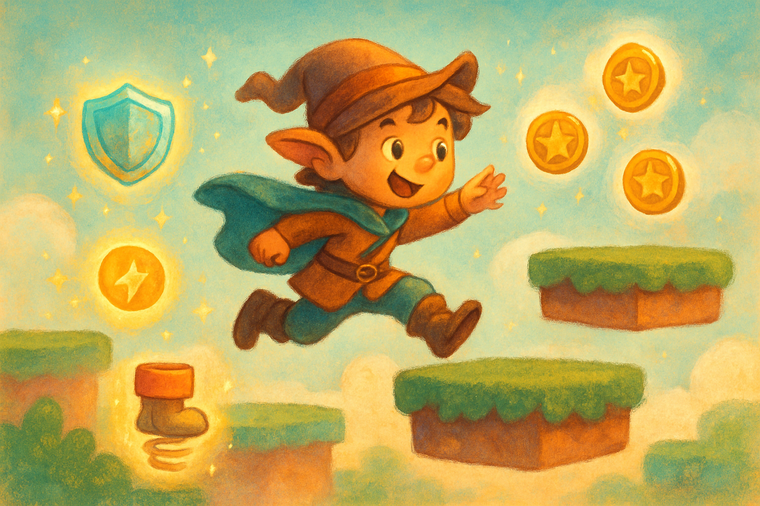 Jump into a coding adventure in MakeCode Arcade to build a platformer featuring your custom hero, coin scores, a timer, and creative power-ups!