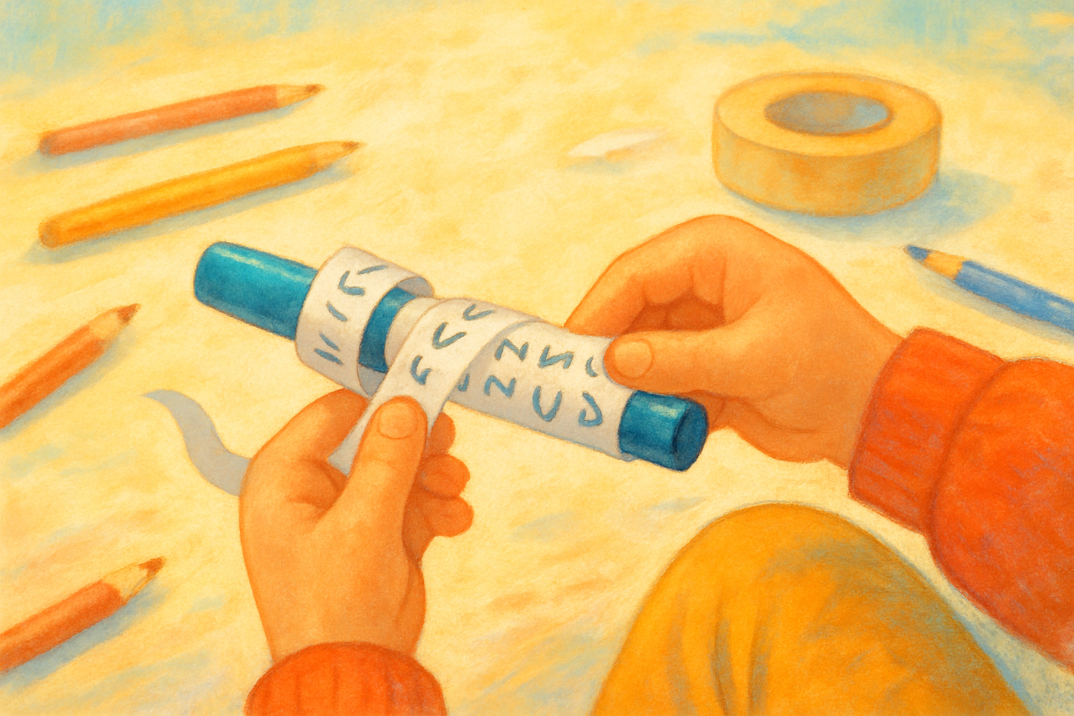 Wrap a paper strip around a marker to create a secret, scrambled message and unlock the magic of transposition ciphers in a playful cryptography adventure.