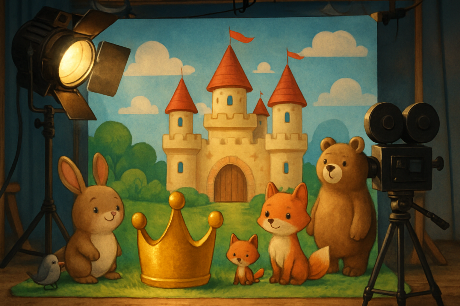 Make a short King movie from scratch: dream up scenes and characters, record voices and sounds, add a soundtrack, and edit a 1–3 minute film to share.