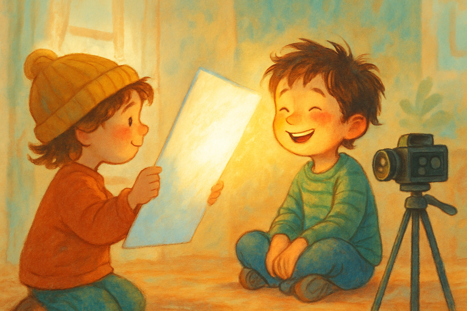 Discover filmmaking magic by bouncing light with a reflector to illuminate your actors' faces in a creative lighting adventure.