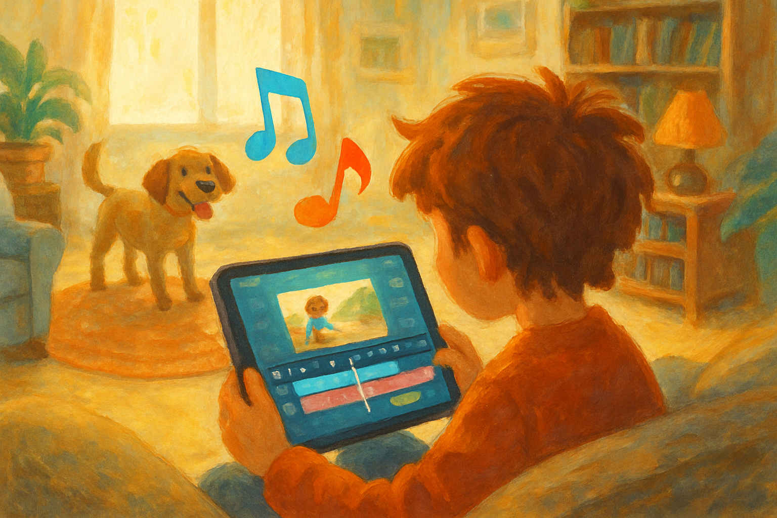 Transform an everyday video scene into a cinematic story with two soundtracks that create playful moods in this creative filmmaking quest.