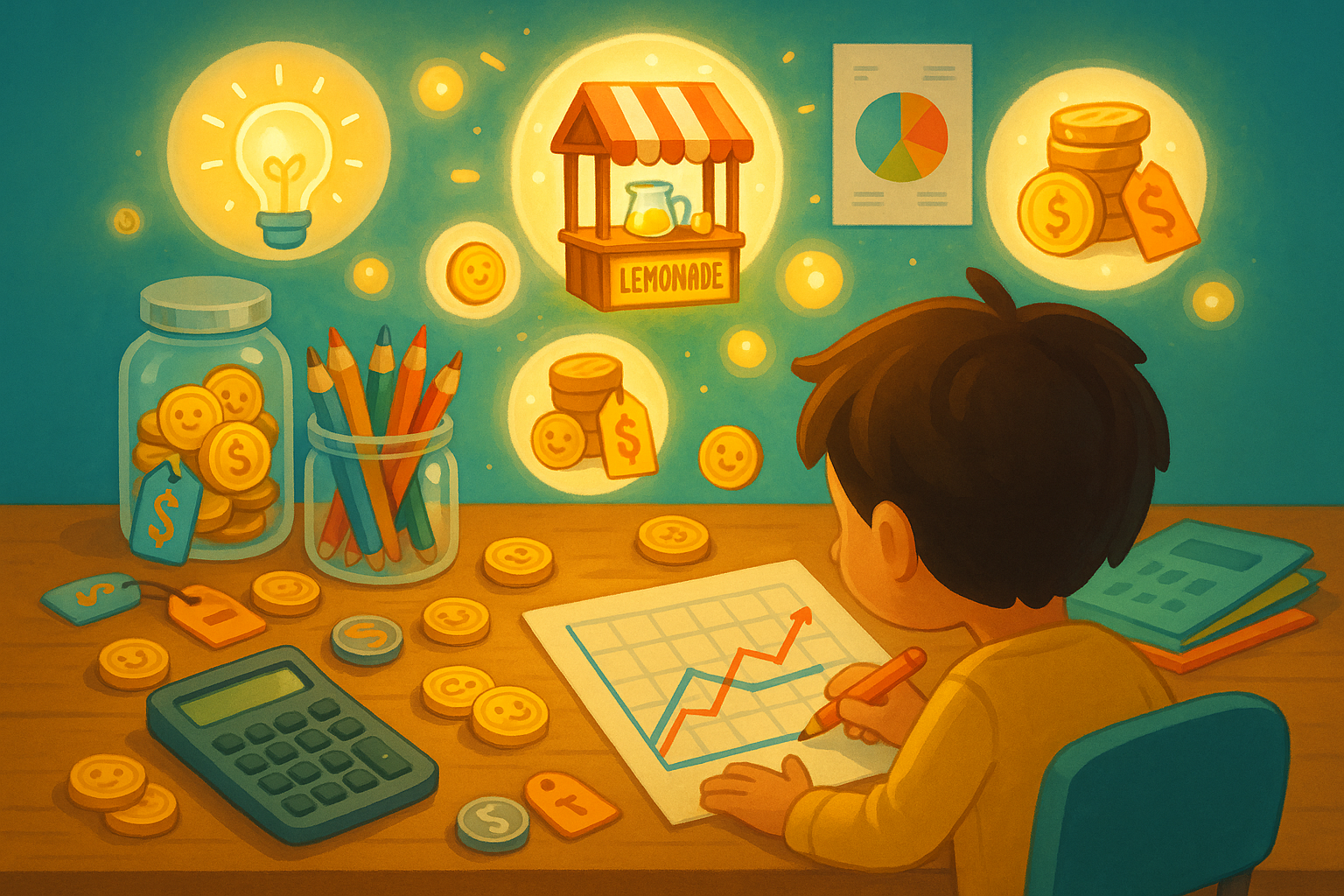 Kids design a bold mini business idea and test whether the money side actually works. A creative quest in pricing, costs, profit, and smart choices.