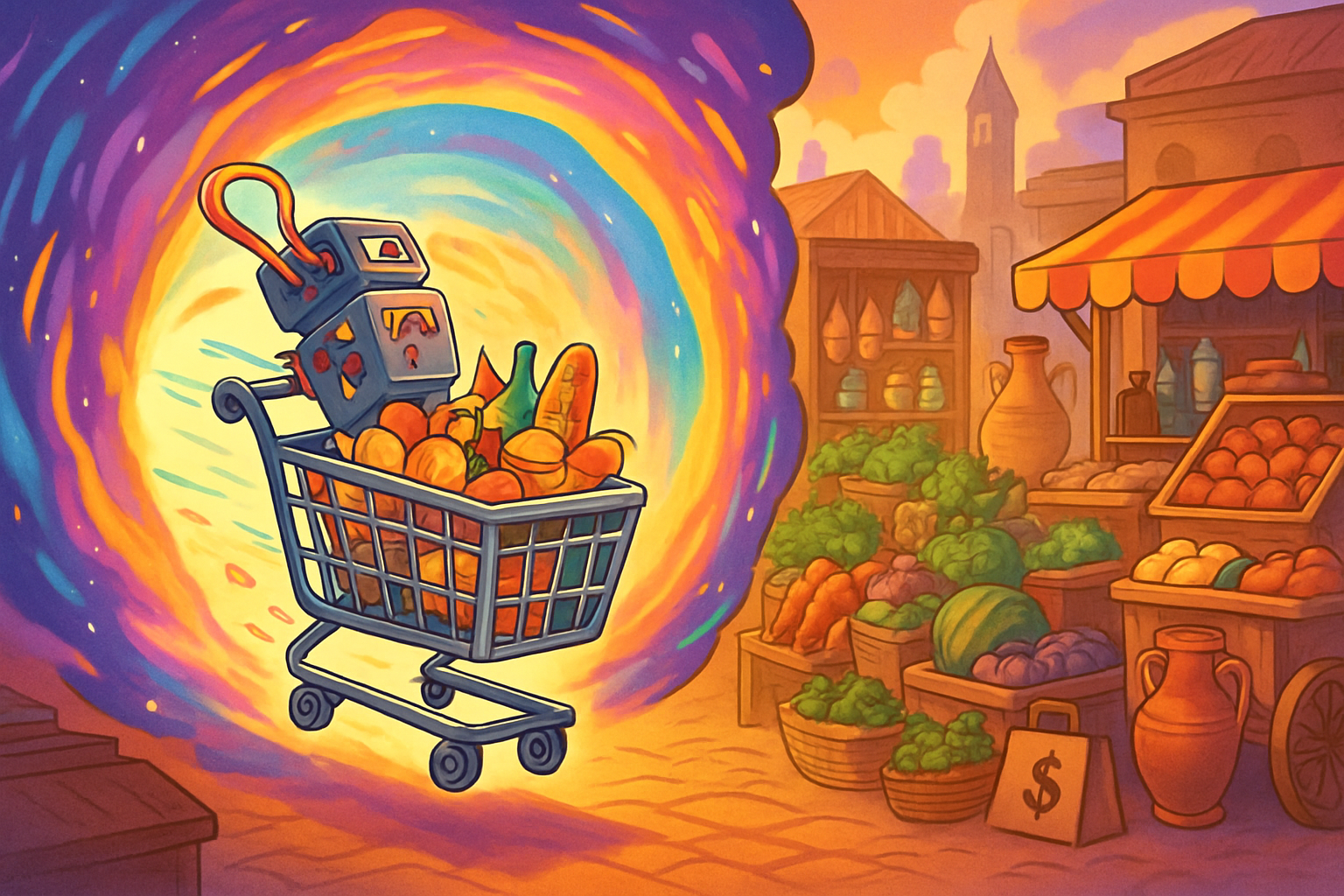 Race through time on a grocery run: compare prices and choices from different years, build a budget for each era, and show how money and shopping change.