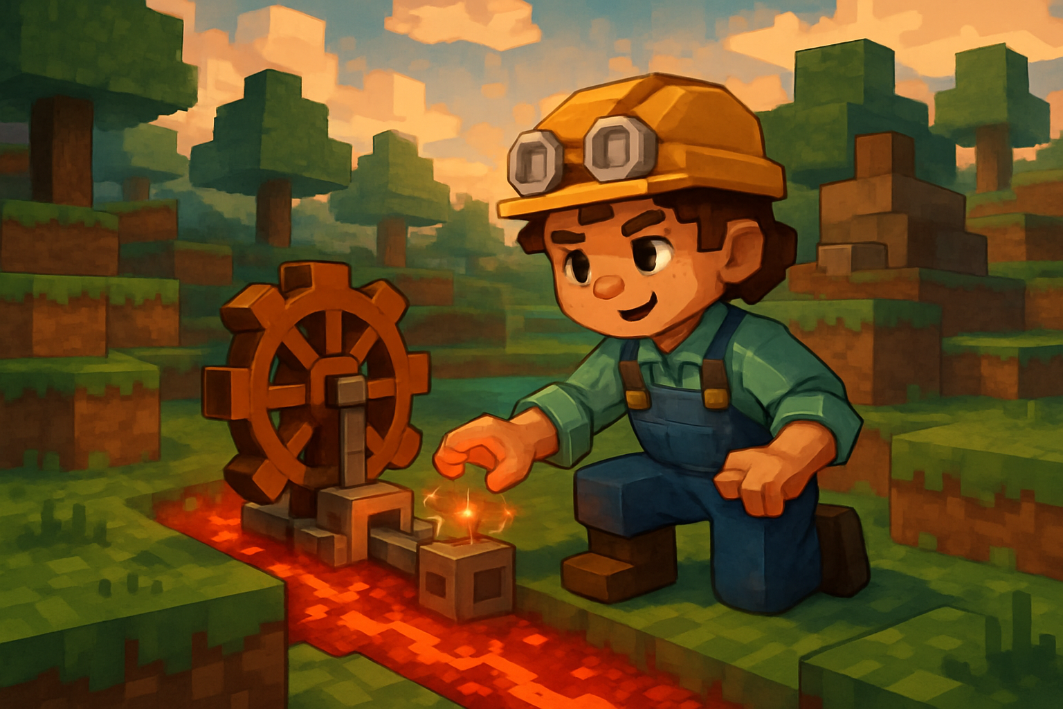 Build a flowing logic river using redstone-style signals—design timing, branches, and clever triggers that power puzzles and machines in a blocky world.