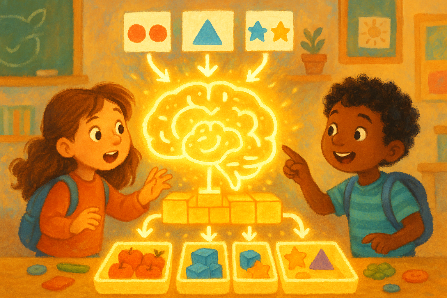 Kids explore how computers learn to sort and spot patterns by inventing their own simple machine learning challenge. A fun first step into AI thinking.