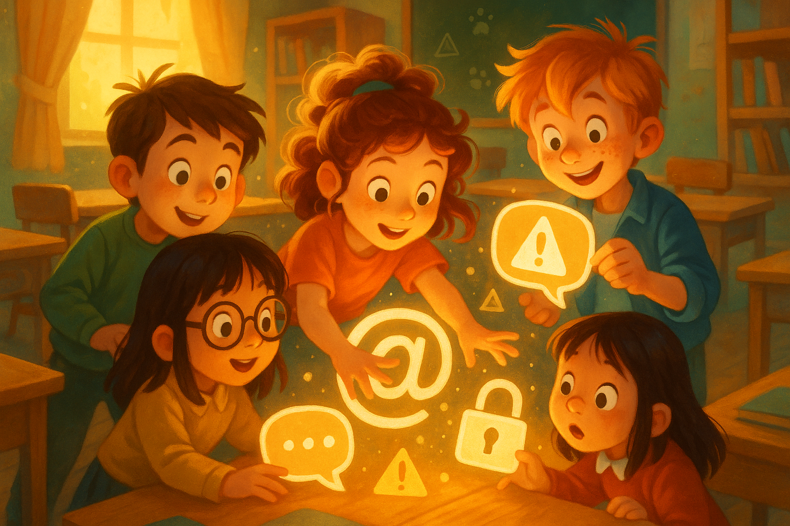 Kids investigate how online tricks, fake messages, and privacy risks work, then create a safety guide that helps others spot red flags fast.