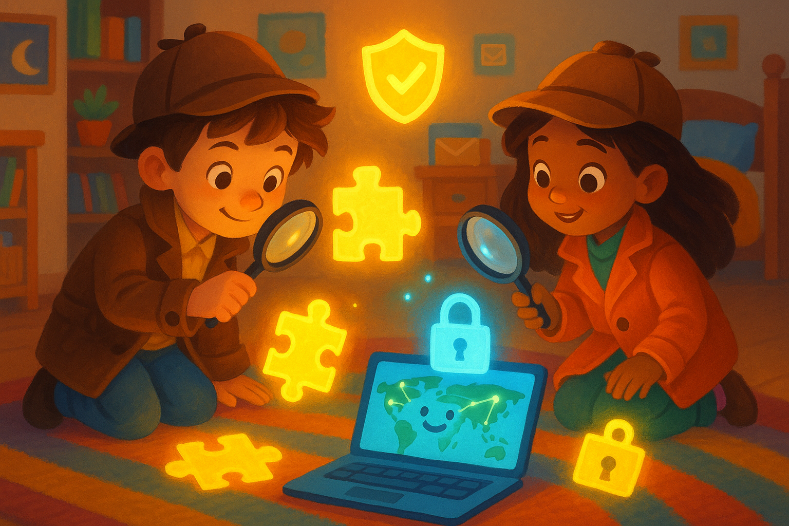 Kids investigate how online tricks are designed and create their own scam-spotting guide or challenge. A creative quest in digital safety and smart decision-making.