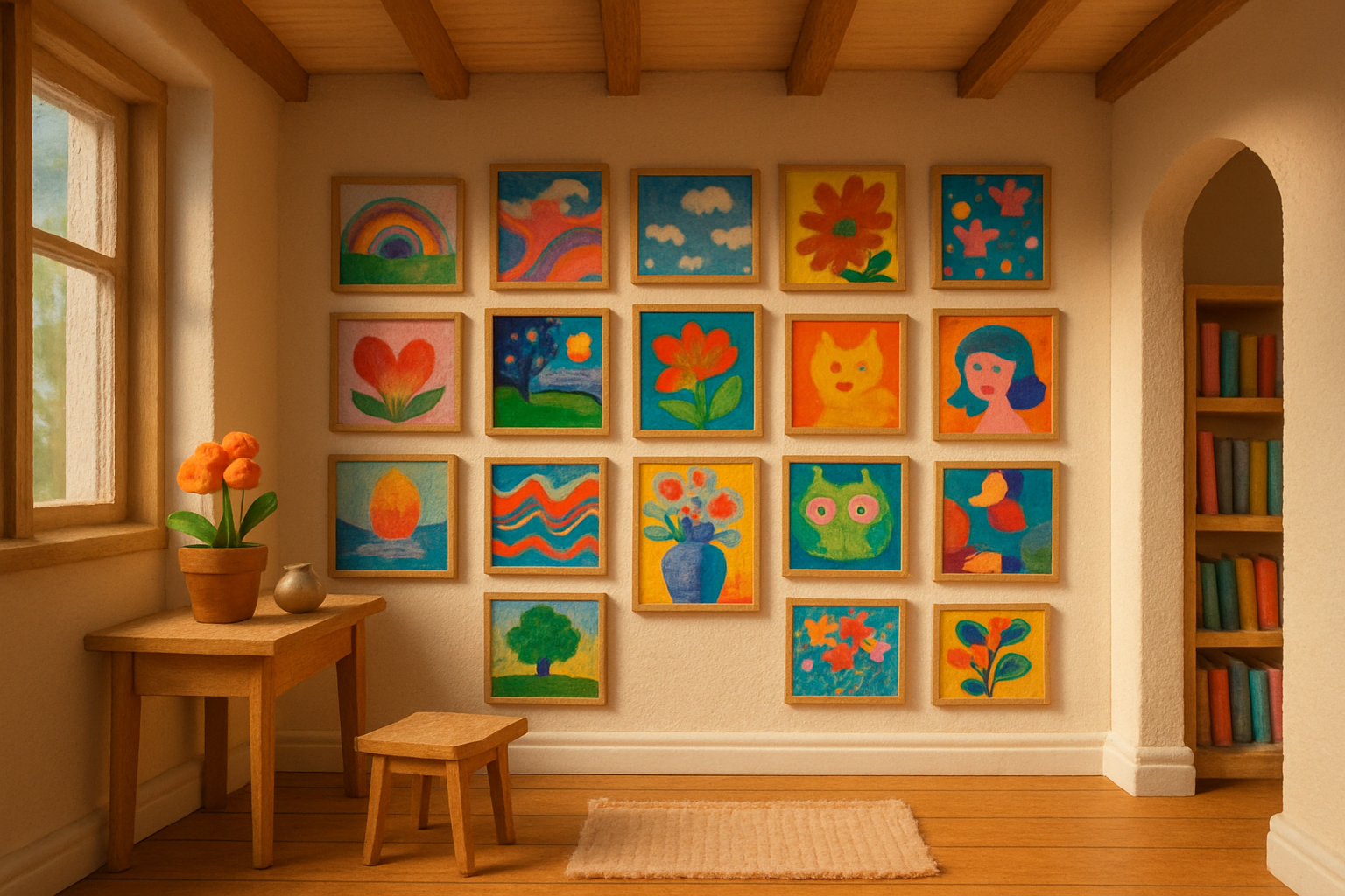 Turn a corner of your home into a tiny gallery: make a daily mini artwork, arrange a small exhibit, and share your collection in bold, playful ways.