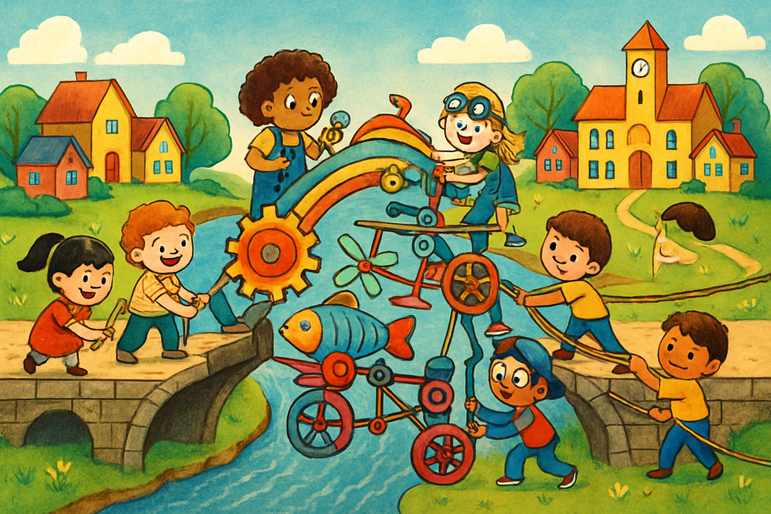 A broken bridge splits two towns. Negotiate a fair plan, design a creative crossing, set rules for safety, and convince everyone your solution works.